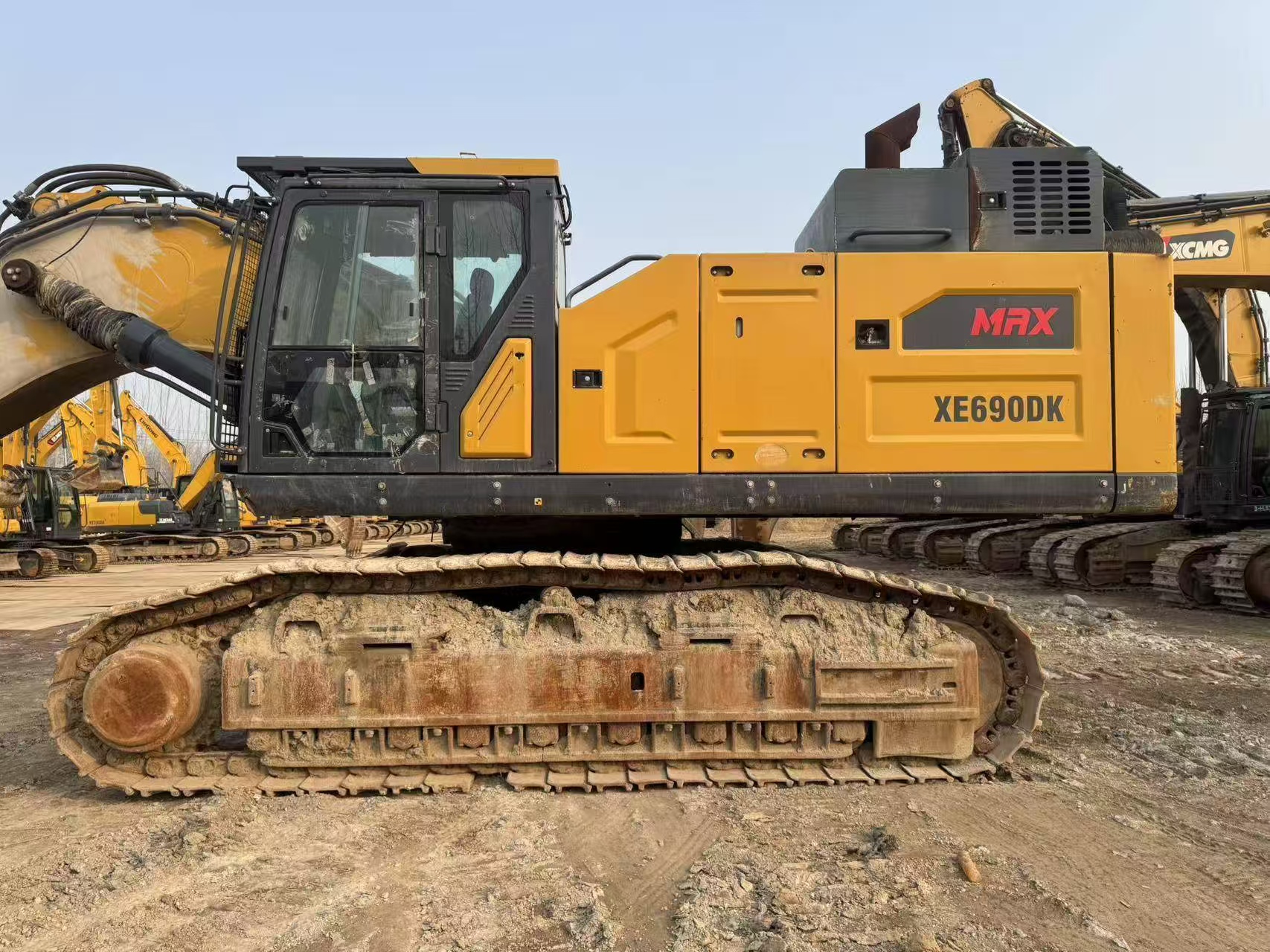 This is the XCMG 690 large excavator. It is suitable for work in mines and is equipped with a Weichai 8-cylinder engine with strong power.